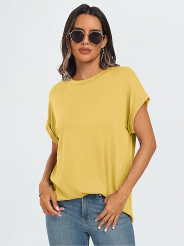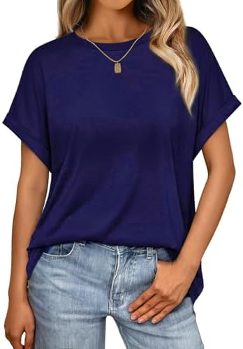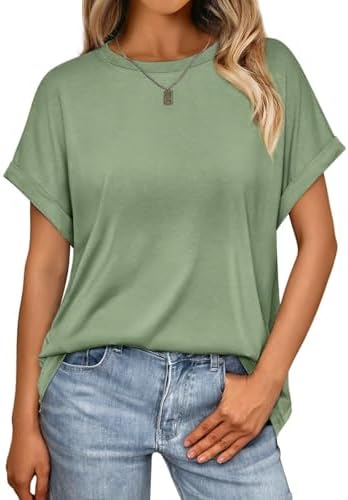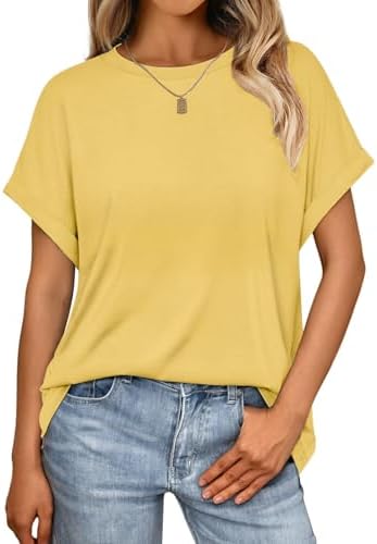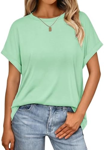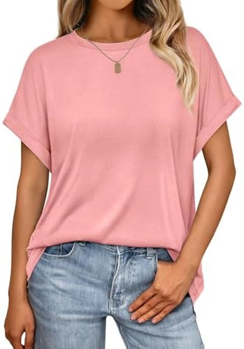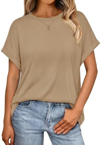 Design: Damen Sommer kurze Ärmel halbsärmeliges T-Shirt, rundhalsausschnitt Design. Einfache einfarbige T-Shirts und leichte casual Oversize Oberteile, die jeder Senfatorial erschwinglich sind.