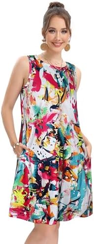 Dieses Sommerkleid für Damen ist bequem, dehnbar und luftig. Es passt sich leicht an und ermöglicht es Ihnen, den Saum zu verstellen oder zu beugen. Es ist leicht und Sie müssen sich nicht Sorgen machen, dass der Saum nach oben fliegt oder hängt.