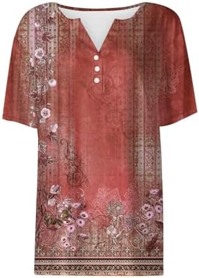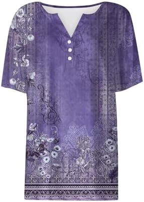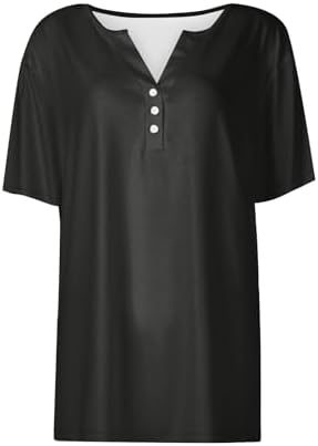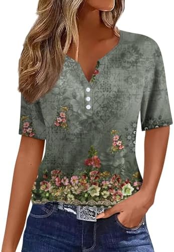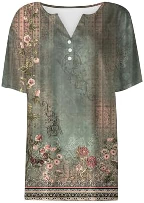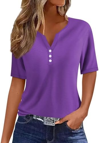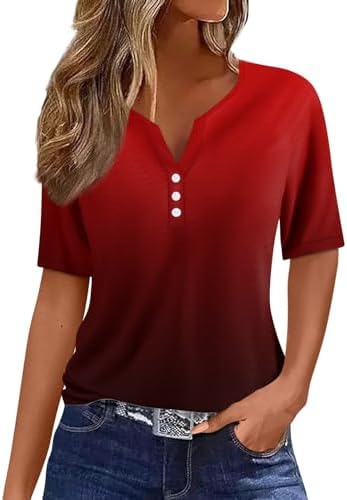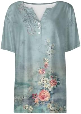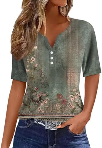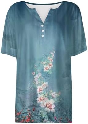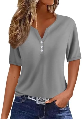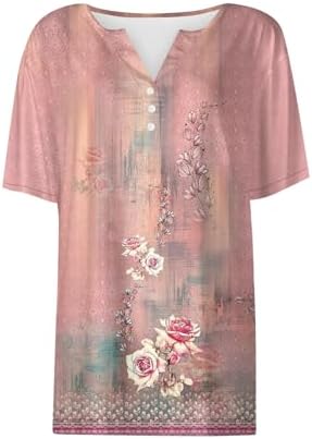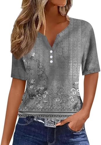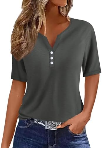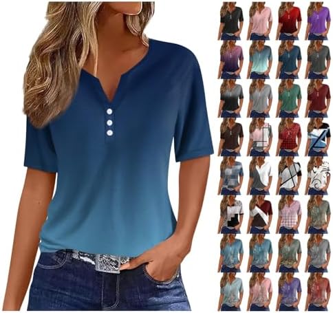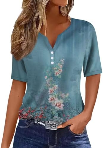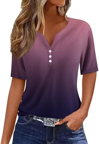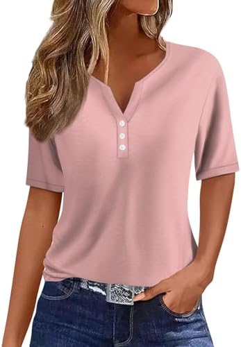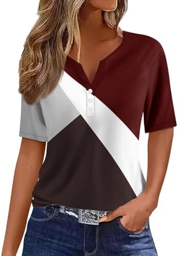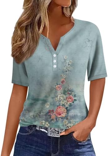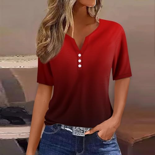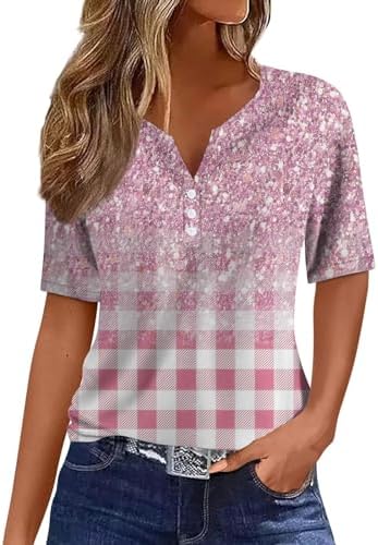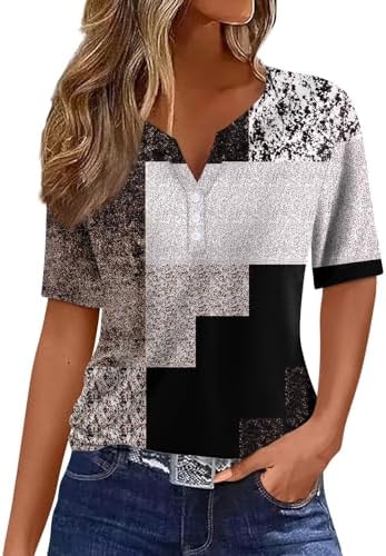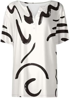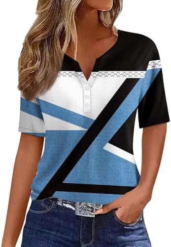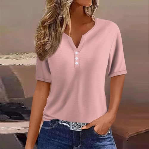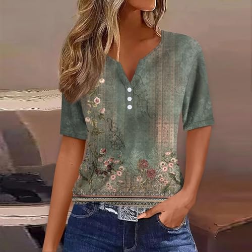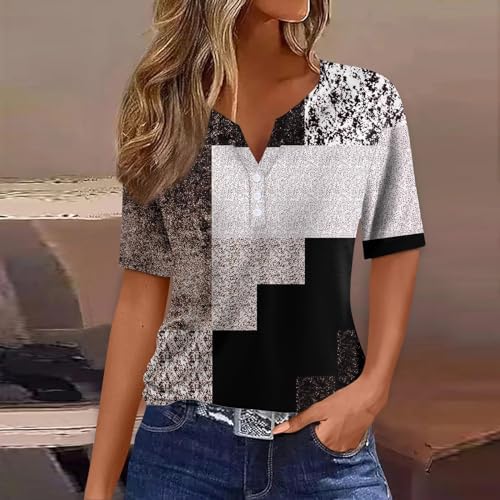 Generisch Sommer Henley-V-Ausschnitt Damen T-Shirt Drucken Casual Fitness Sportbluse