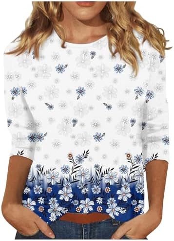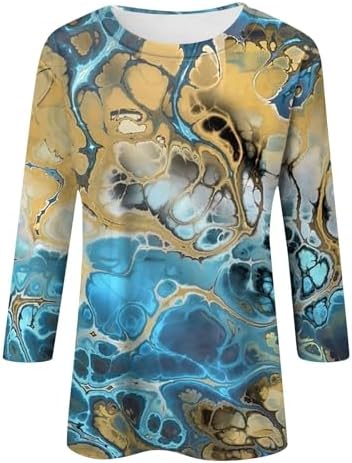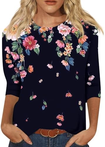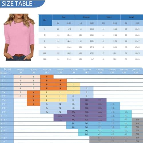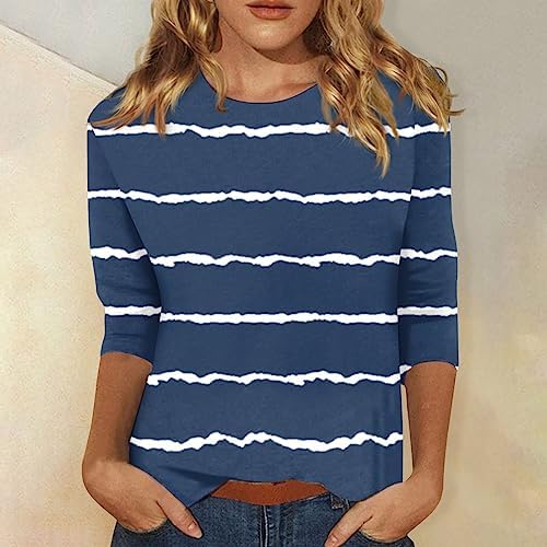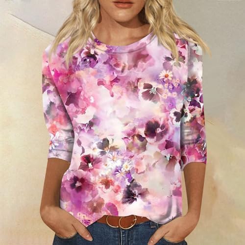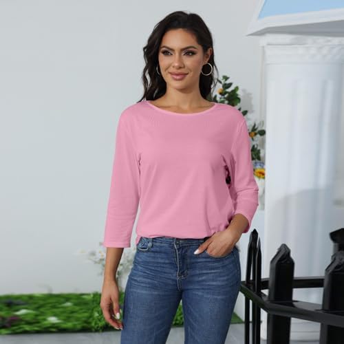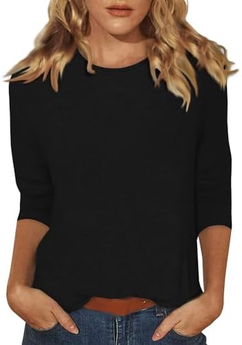 Generische Damen Basic Rundhals 3/4 Ärmel T-Shirt Frühling Sommer Einfarbig Lose Blusen Elegante Oberteile
