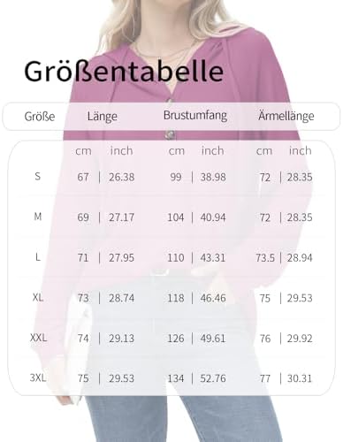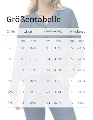 Pflegehinweise: Der Damen-Kapuzenpullover mit langen Ärmeln sollte mit kaltem Wasser gewaschen werden. Vermeiden Sie das Verwenden von Bleichmittel. Hängen Sie ihn zum Trocknen auf.
