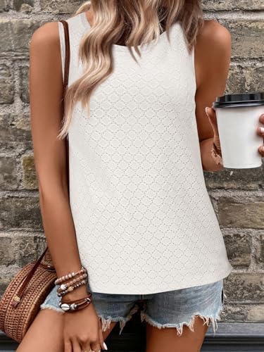 Das Damen Sommer Top mit Lochstickerung ist armellos und trägt einen klassischen Rundhals. Der locker gestrickte Saum macht das Top sowohl ansprechend aussehend als auch angenehm zu tragen. Es ist ein herausragendes Stück für modische Outfits.