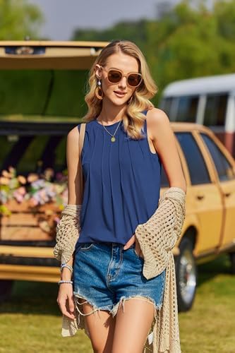 Die Faltsituation verleiht diesen hochgeschlossenen Tank Tops eine besondere Note. Breite Träger und passend dimensionierte Armausschnitte sorgen für Komfort im Achselbereich und decken Brust und BH. Das fließende ärmellose Top bringt sowohl Stil als auch Komfort, insbesondere im Urlaub oder beim Ausgehen.